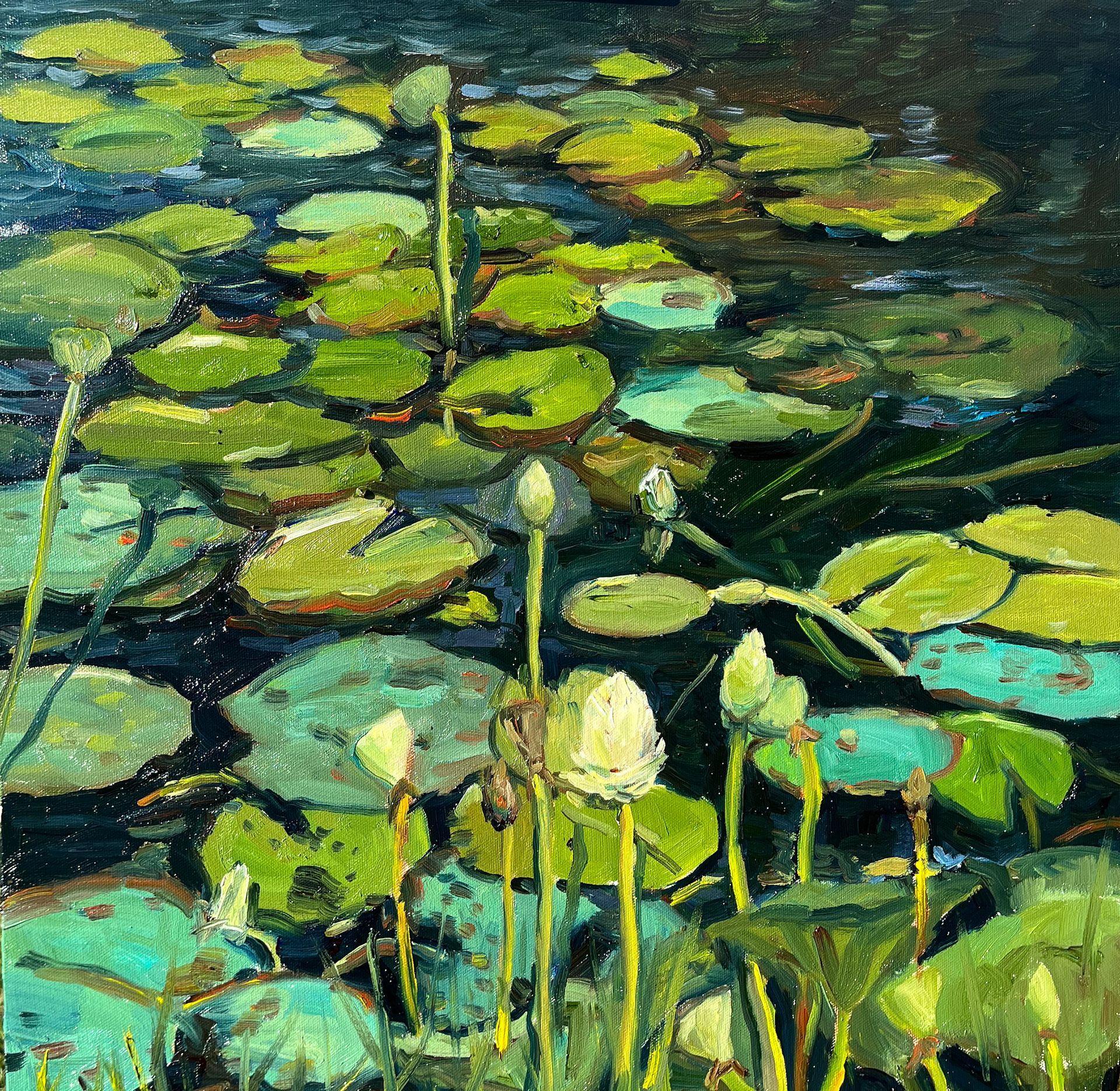 Lake Lafayette-Summer Lilies, Oil on Canvas, 36x28", 2024