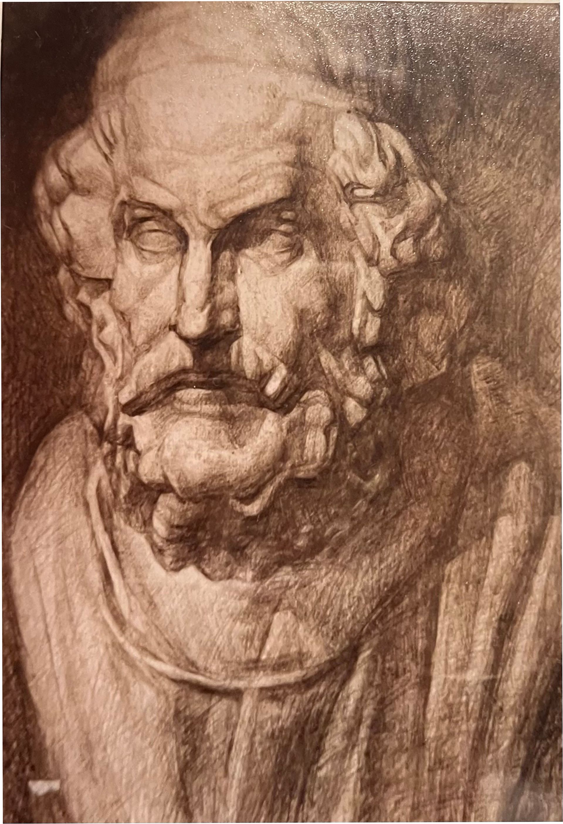ButtonSergio Back View, Black and White Charcoal Pencil on Toned Paper, 9x12", 2025